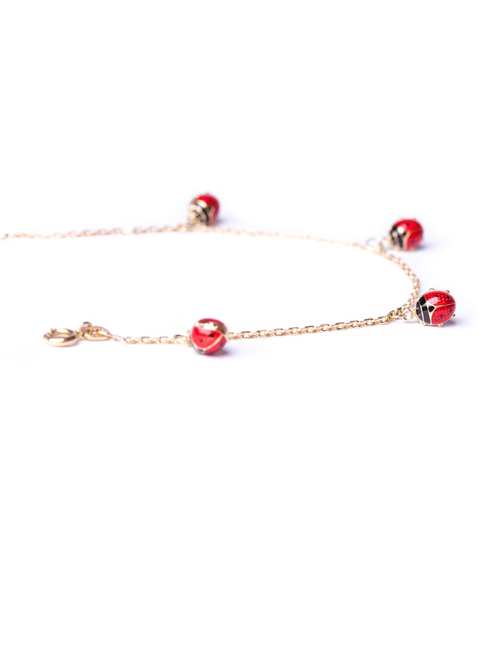 Pulseira infantil em ouro amarelo 18k com joaninha esmaltada