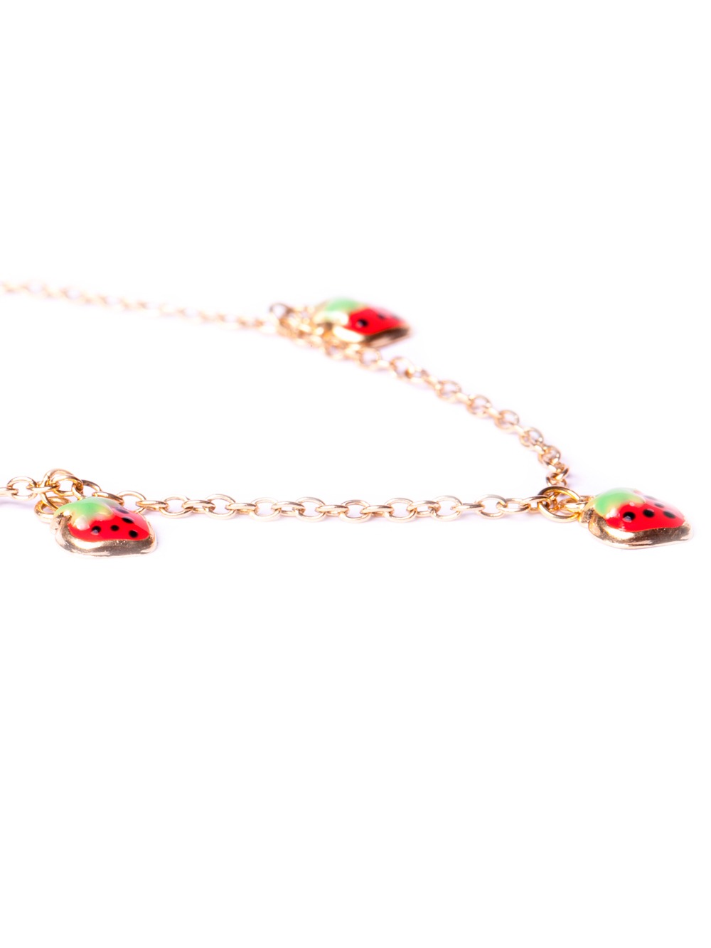 Pulseira infantil de moranguinhos esmaltados em ouro amarelo 18k
